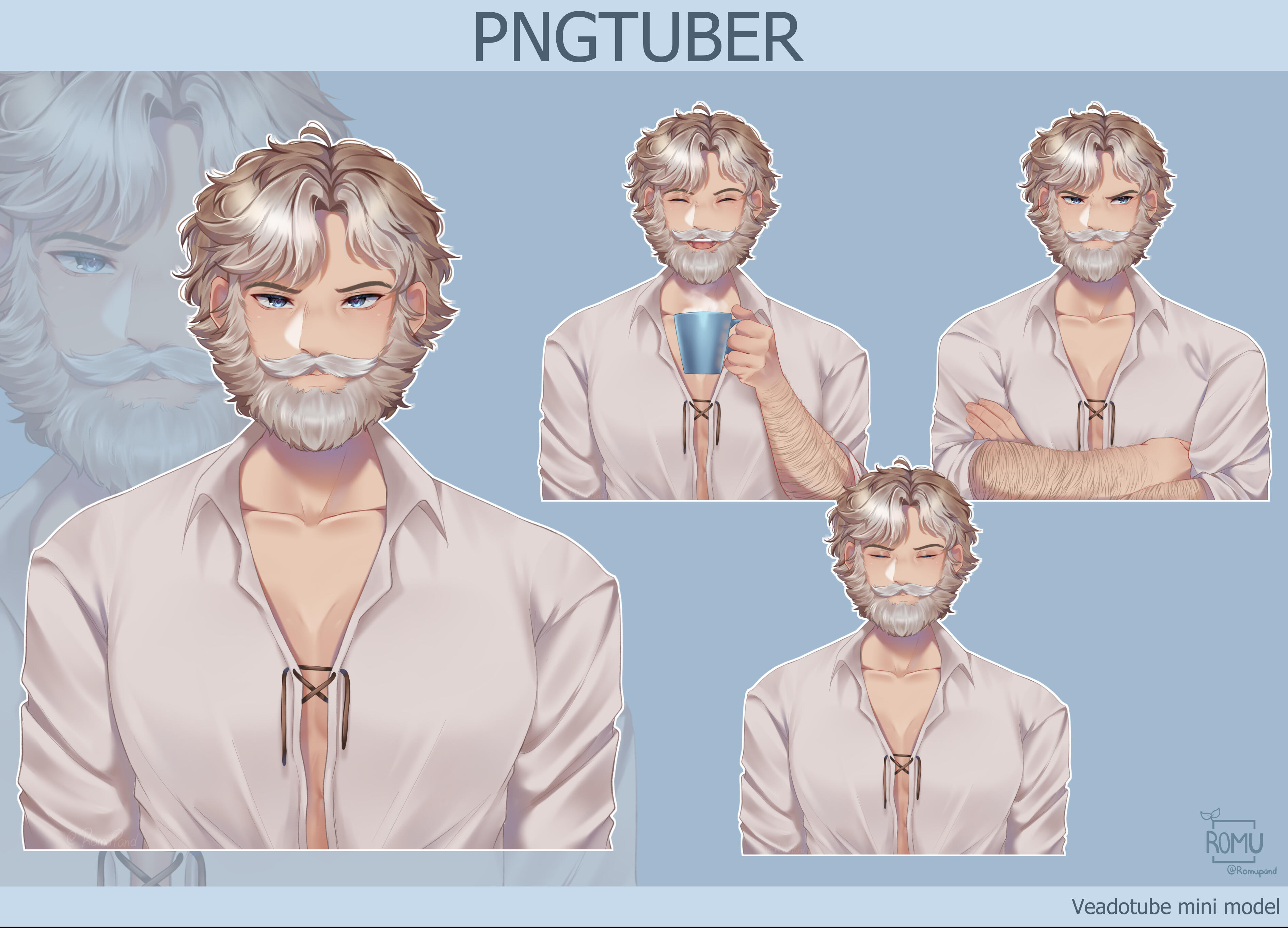 ★ bust full color★ 4 images (open eyes + mouth closed / closed eyes + mouth closed / open eyes + mouth open / closed eyes + mouth open)★ transparent background★ made for "Veadotuve Mini Model"★ model not suitable for rigg, I don't deliver the psd file either